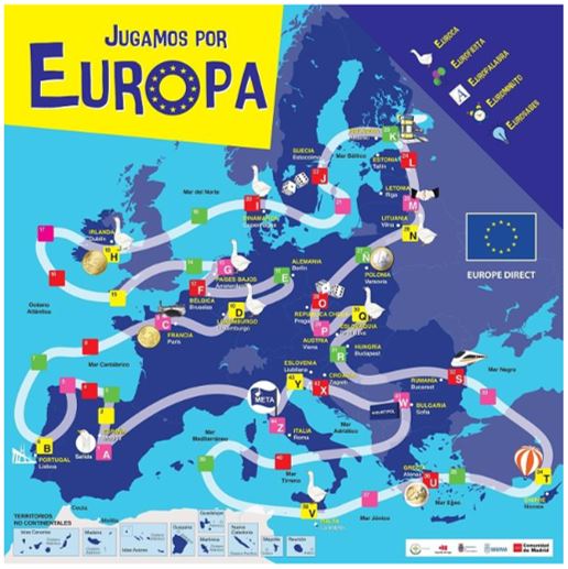 Un juego de mesa creado de manera conjunta por los Europe Direct de Lugo, Cantabria, Asturias, Segovia y Comunidad de Madrid.